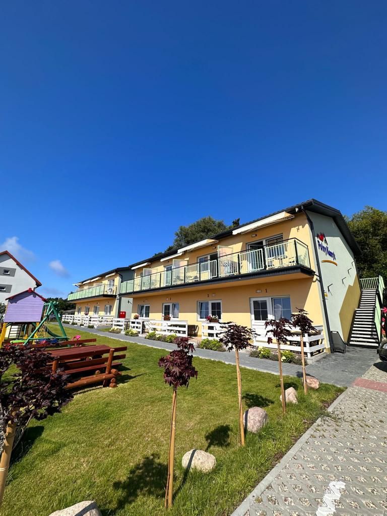Spokojny i malowniczy wypoczynek. Apartamenty Wicie – Noclegi nad Morzem. Wszystkie dwupokojowe i jednopokojowe apartamenty są kompleksowo urządzone, posiadają w pełni wyposażone aneksy kuchenne, telewizor, lodówkę, własną łazienkę oraz balkon lub taras.