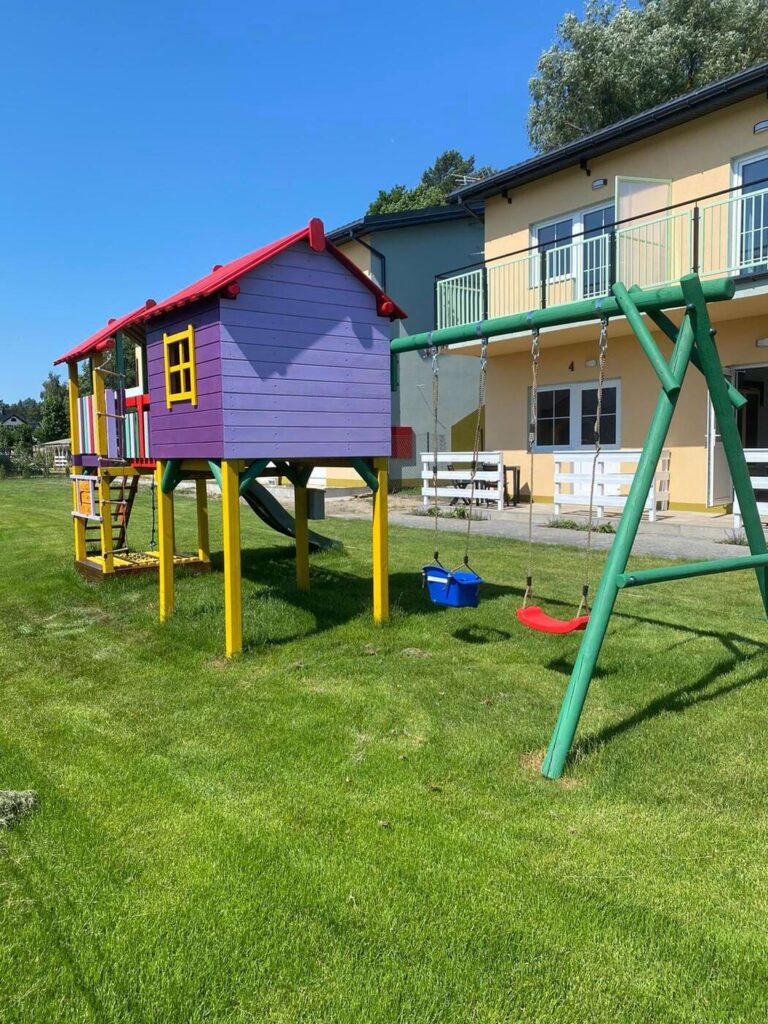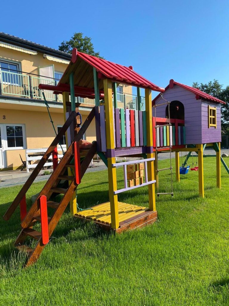 W Polnym Kamyku mali odkrywcy znajdą coś dla siebie! Na terenie obiektu czeka kolorowy, zewnętrzny plac zabaw – idealne miejsce do harców, wspinaczki i beztroskich zjeżdżalniowych rajdów. Huśtawki, drabinki i mnóstwo przestrzeni do zabawy na świeżym powietrzu – tu dziecięca wyobraźnia nie zna granic, a rodzice mogą złapać chwilę oddechu. W Polnym Kamyku zabawa nigdy się nie kończy!